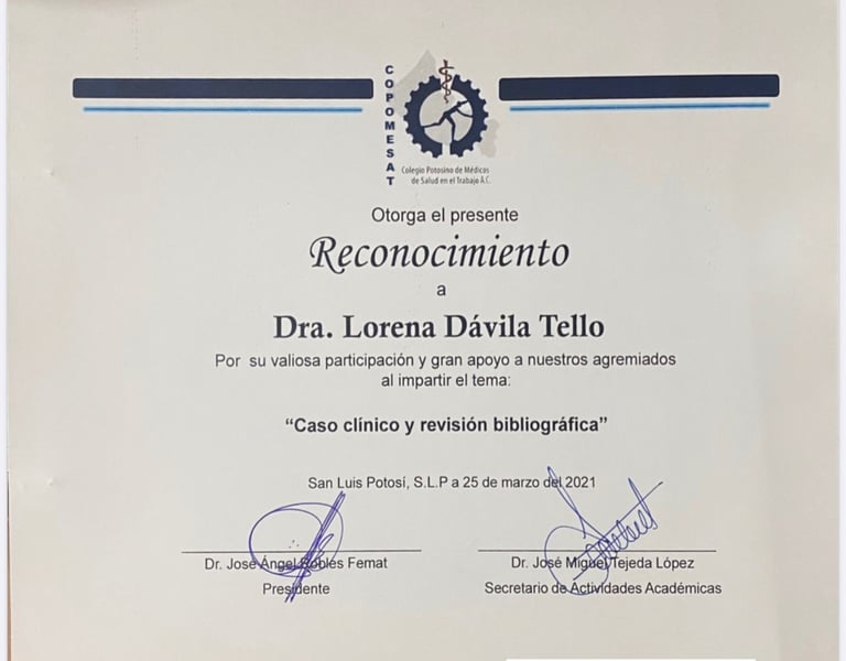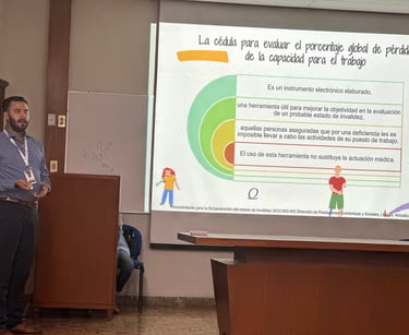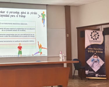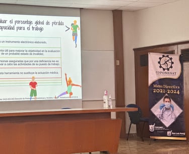 Se actualiza la colaboración entre el COPOMESAT y la sede académica de la especialidad de Medicina del Trabajo y Ambiental con sede UMF 45 de San Luis Potosí. Presentándose el pasado jueves 28 de septiembre de 2023 en Sesión Ordinaria el Tema Invalidez en México y Su Caracterización por parte de los residentes de segundo grado: Dra Silvia Arlette Hernández Medina y Dr Edgar Mora Galván