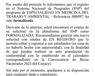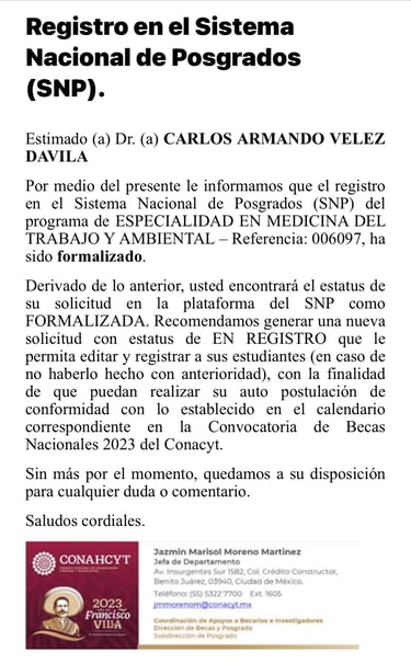 Somos parte del Sistema Nacional de Posgrados Conahcyt lo cual registra nuestro programa académico y nuestra sede en los sistemas Nacionales de Posgrados de Calidad en México lo cual acredita que es un programa competente, organizado y de calidad; así como permite el acceso a Becas Conahcyt.