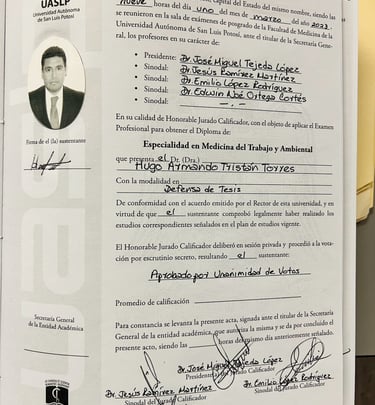 Cada año ingresan posterior al ENARM los médicos residentes que cursarán su programa de posgrado en SLP y son los propios Médicos Residentes de Grado Superior de Medicina del Trabajo y Ambiental quienes apoyan en esta actividad para la emisión del grado de aptitud acorde a profesiogramas.
