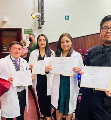 Al finalizar el programa académico y una vez que se haya documentado la aprobación de las actividades académicas, incluyendo la presentación del trabajo de Tesis como examen profesional, se recibe un Certificado por parte del IMSS y un Título Universitario.